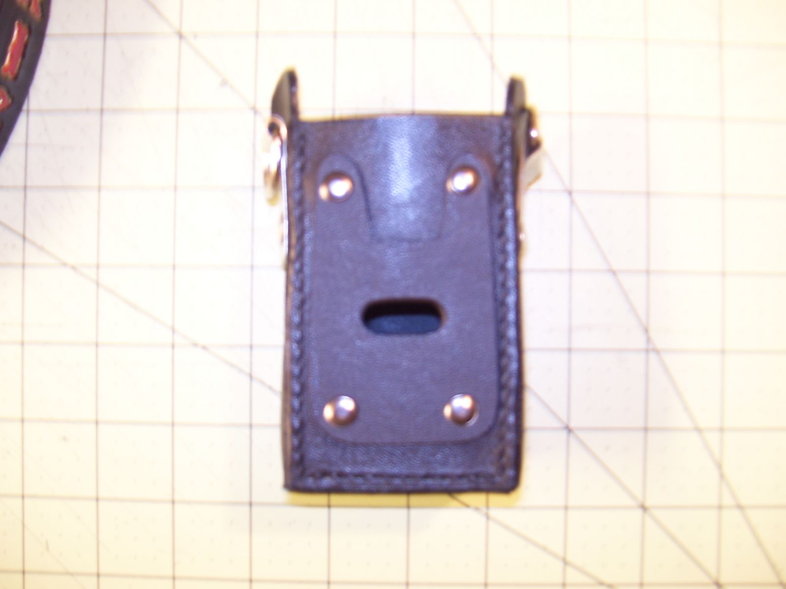 I designed the Kydex reinforcement. Belt clip of radio clips in and prevents the radio falling out, and the notch is necessary to allow room for the inside of the clip. I discovered this after the prototype that was a rectangle pushed the belt clip up and prevented it from locking in the hole.