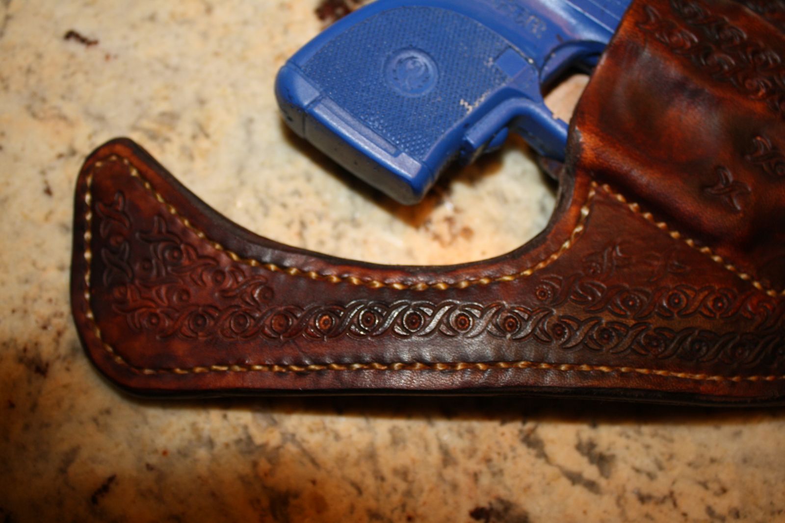 Pocket holster for LCP with crimson trace laser sight. Made for the left shirt pocket of 511 duty uniform.