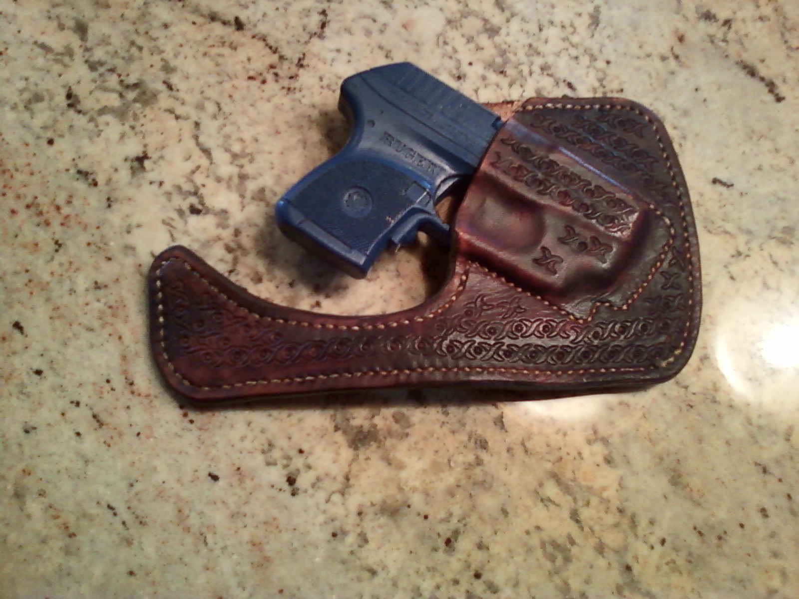 Pocket holster for LCP with crimson trace laser sight. Made for the left shirt pocket of 511 duty uniform.