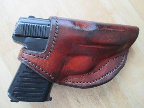 A .32 Jennings thumb break holster. All always, my work is lined with a fine 3-4 leather and reinforced for super security and reliability. This has a back cant for easy draw.