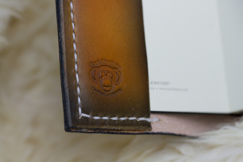 Small Moleskin leather cover, detail of my favorite monkey and the Tiger thread....