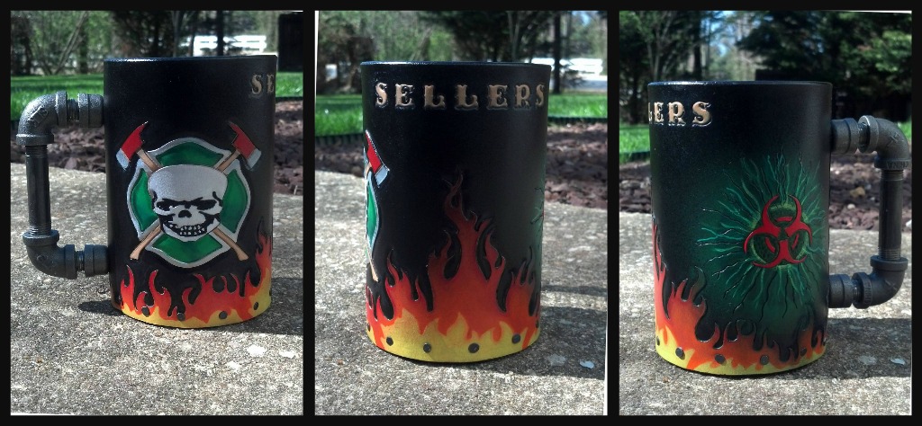 Custom leather mug made for a Navy firefighter aboard the USS SAN ANTONIO.