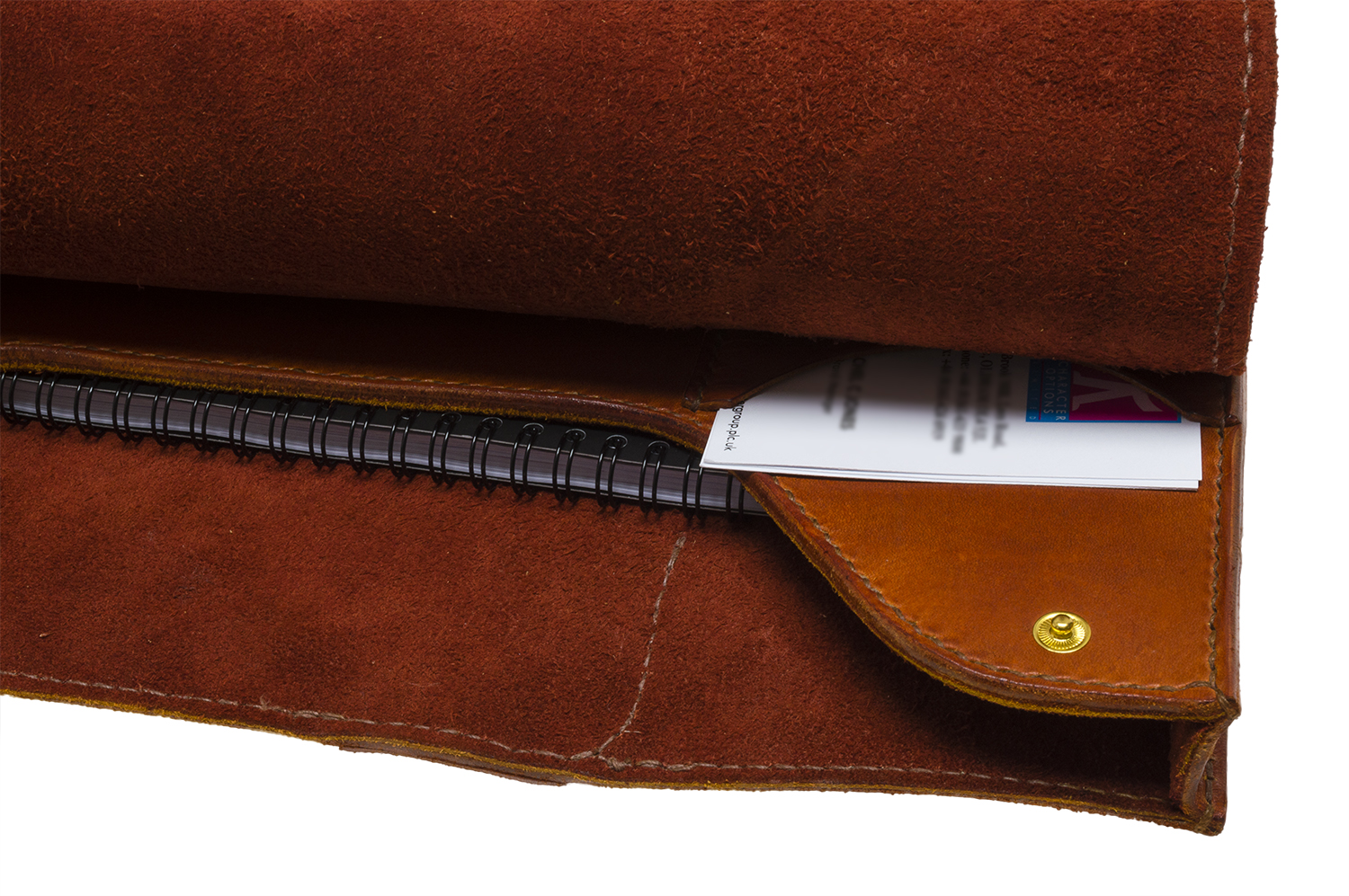 I decided to put the pocket for the writing pad and loose leafs at the back of the folio. This way they are available when needed, but kept out of the way. Its approx 2cm deep to take a reasonable amount of paper, and I also put the business card sleeve at the back also. Again, so they are readily available but stored out of the way.