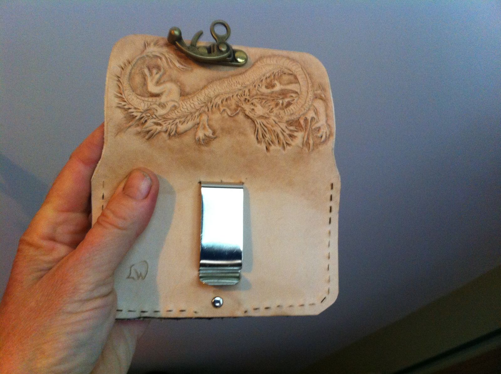 She wanted it horizontal, with a clip, removable strap, inside pocket, clasp and a green chinese dragon in front. Will post when it is finished. I am pleased with the dragon...its just the cutest little thing