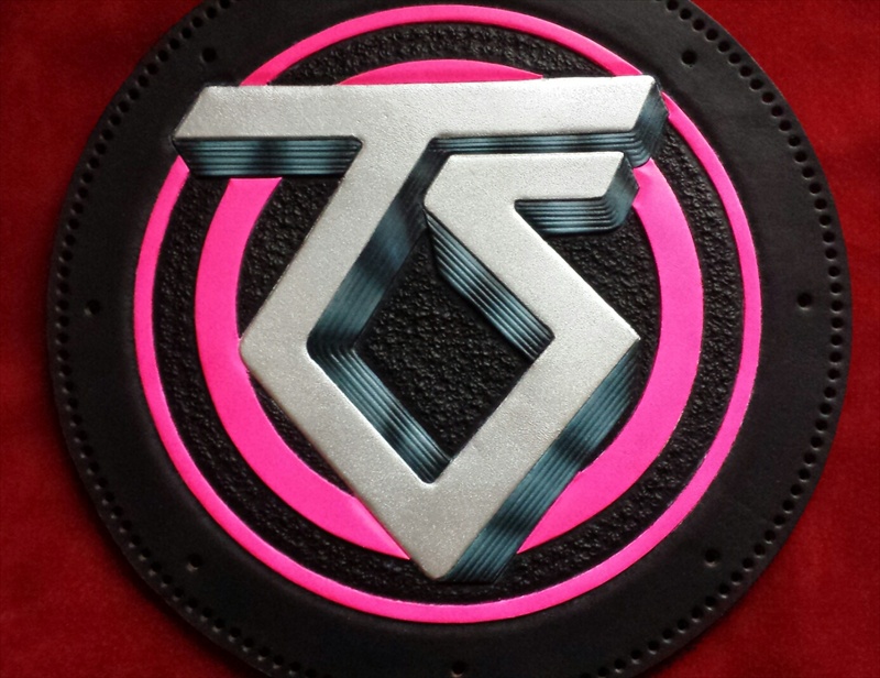 Work in progress on a Twisted Sister Back patch. Next the paint and dye will be touched up around the edges before clearcoat and lacing around the edge.
