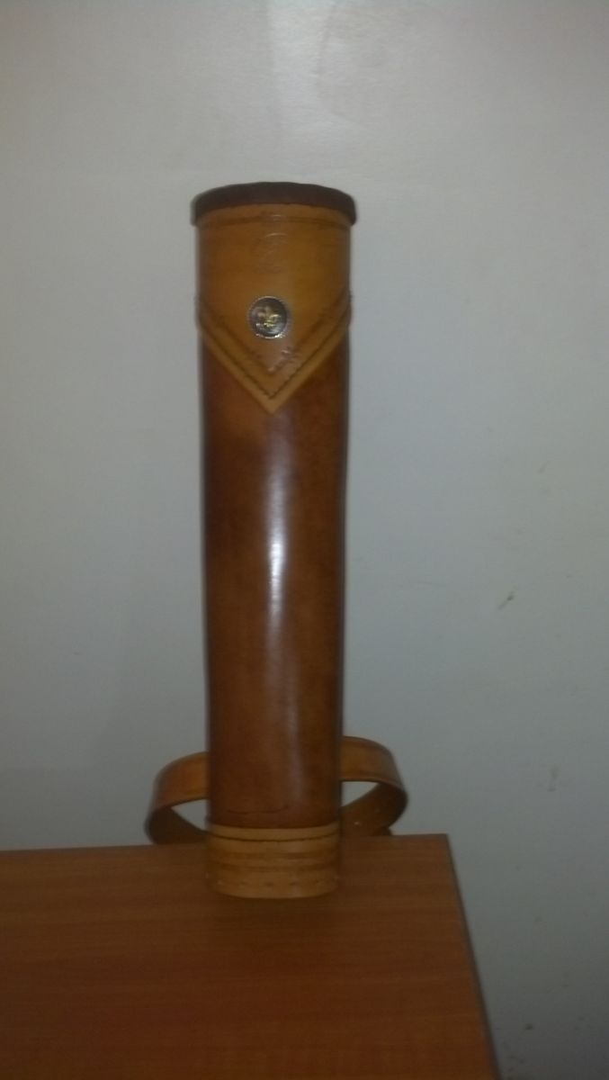Boys quiver with hand stamped animals and Boy scout emblem concho. Top is lined with deerskin.