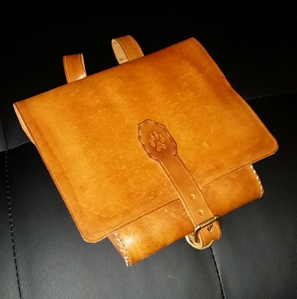 A stained cowhide pouch with a paw print stamp, I think this is when I was on my stamping kick ![]()