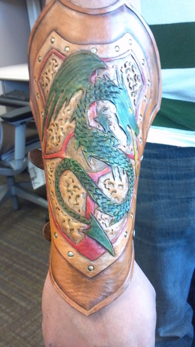 My 1st armguard and my 1st dragon. I put iridescent paint on the dragon, but need work on shading.