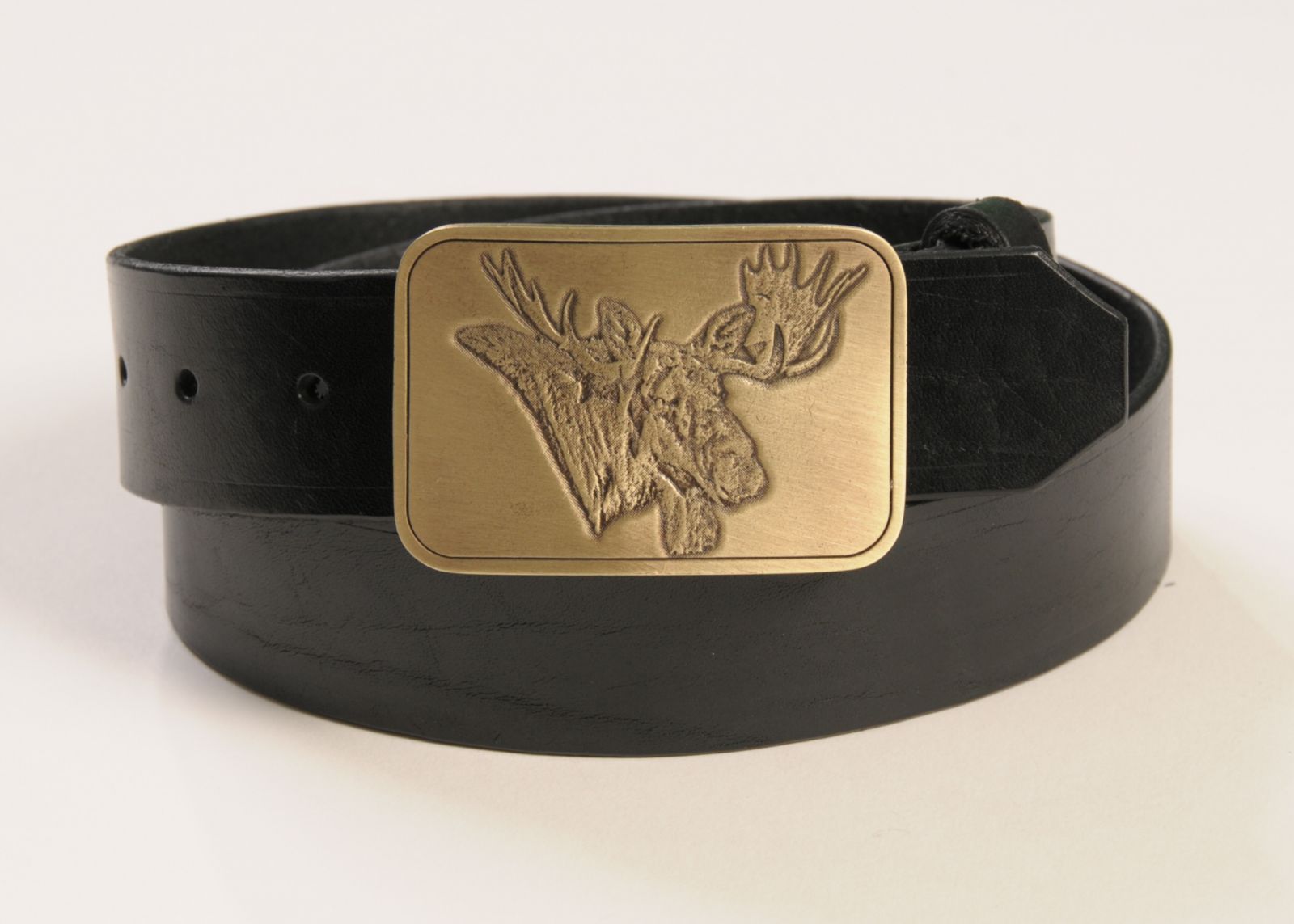Moose Head Leather 1.5 Inch Belt With Brass Buckle 1