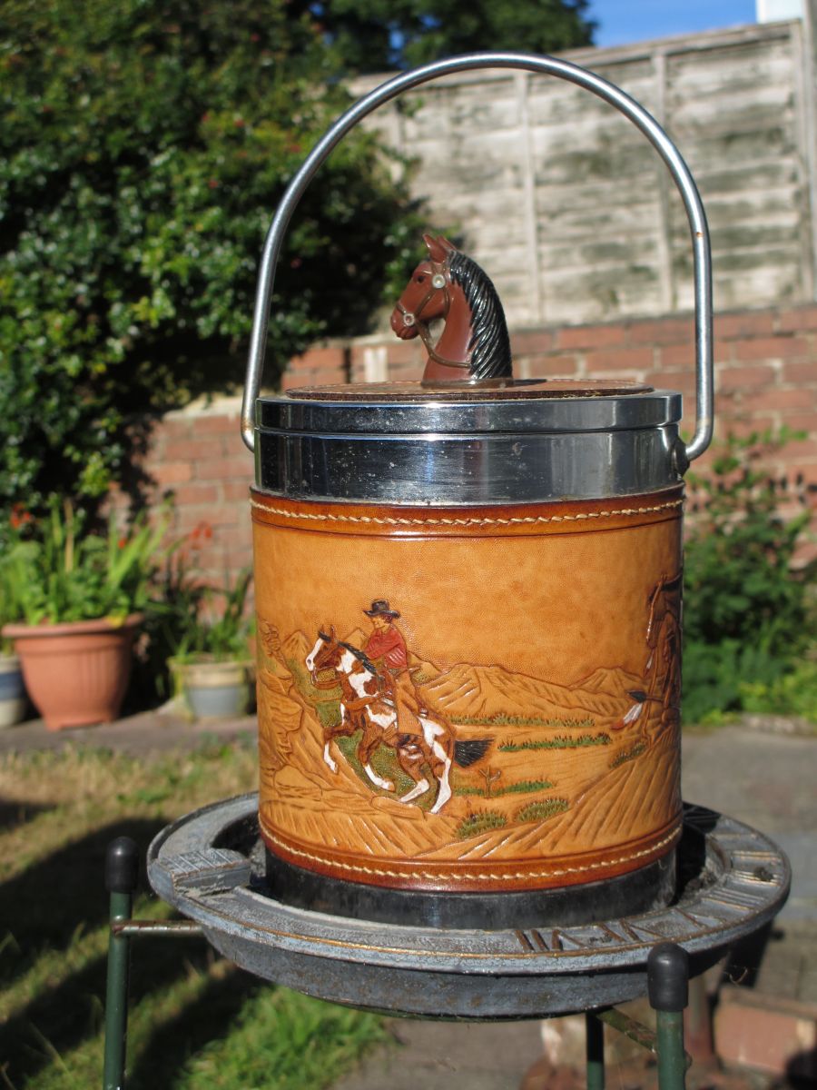 I made this in 1986.The wrap around scene is of a cowboy chasing horses with an indian watching on the hillside.