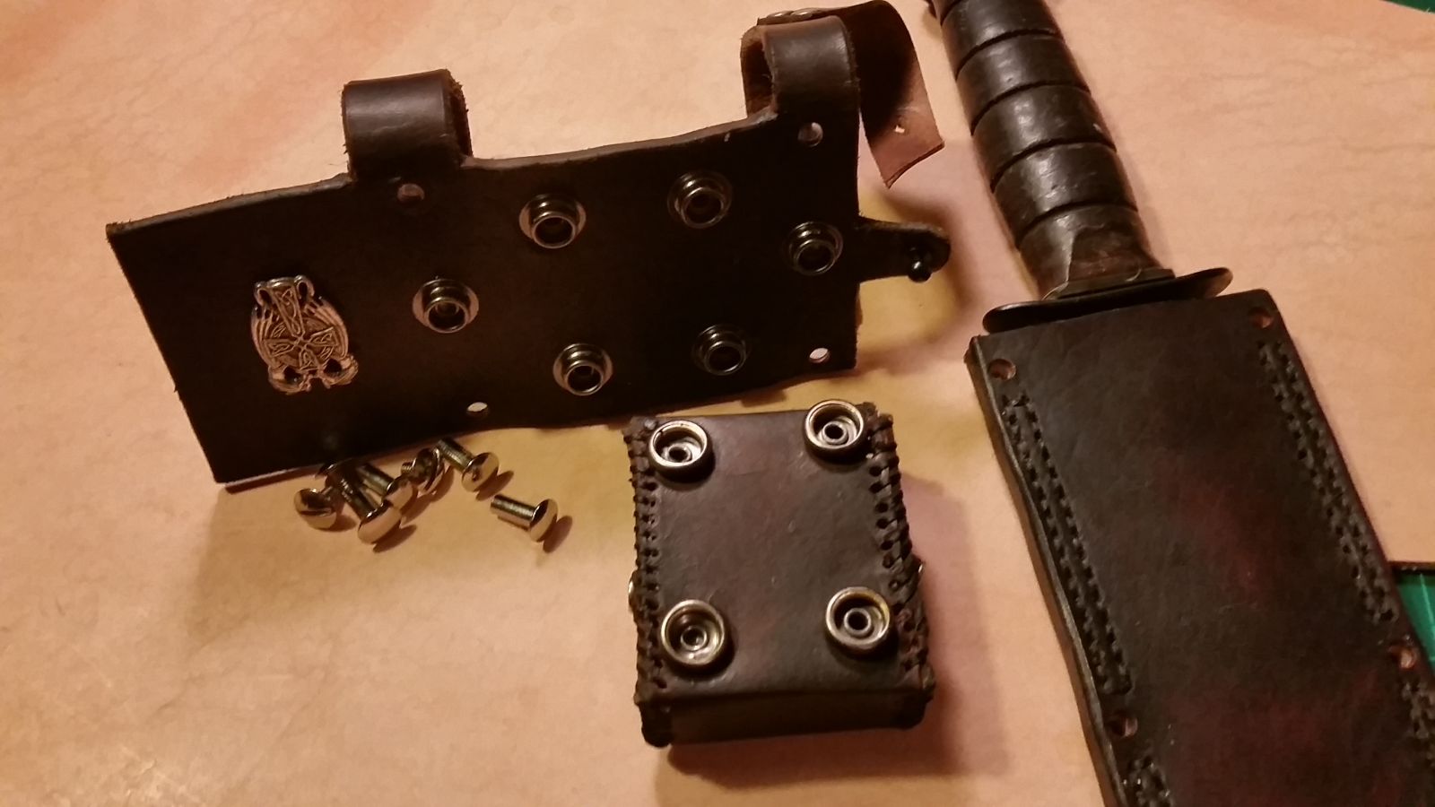 I made this for my brother for his Birthday. My Dad gives every boy that graduates from boot camp a KA-BAR knife (I have 5 brothers) to take with them over seas. This is for his knife.