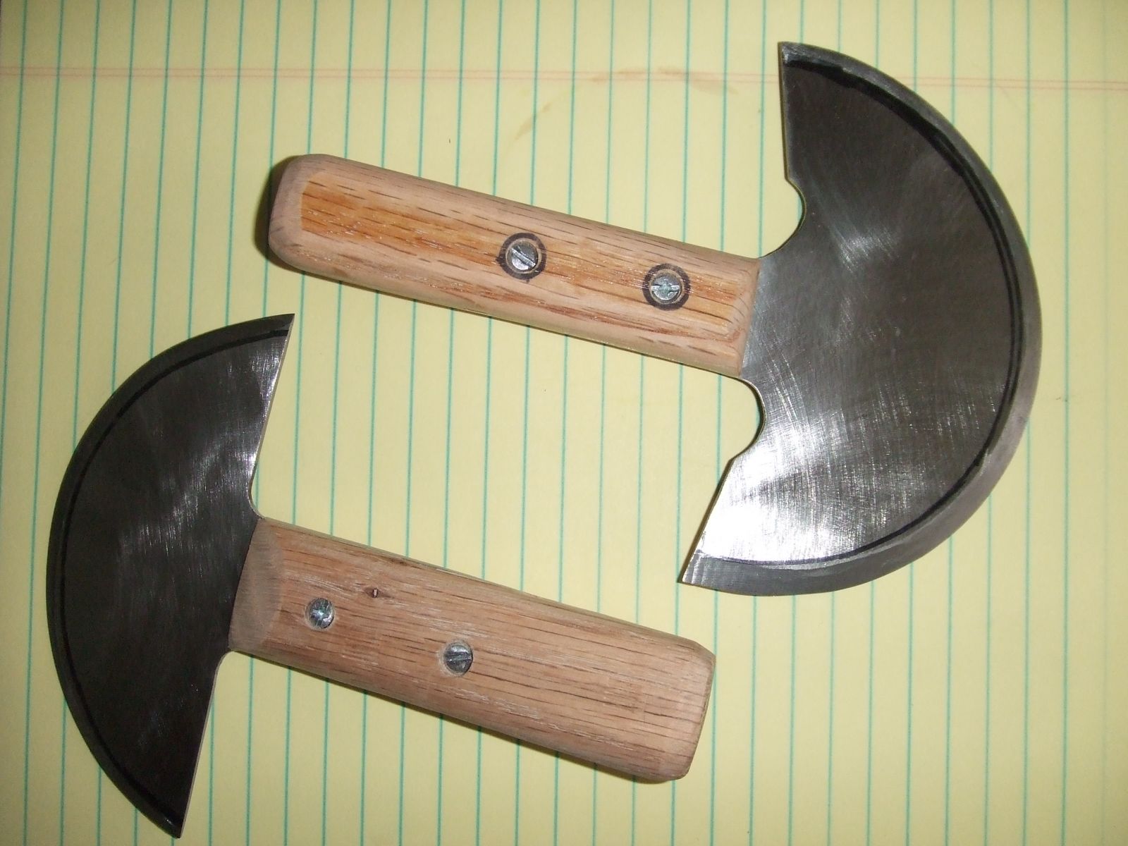 Had some scrap oak and used it to make the handles. Not perfectly round or oval, sort of a offset oval in cross section. Easier to hold and allows leverage.