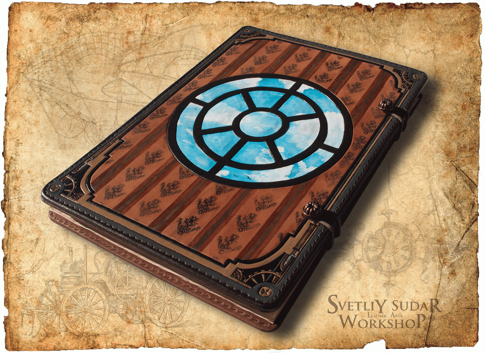 This leather steampunk sketchbook we made to order specifically as a gift to the artist.