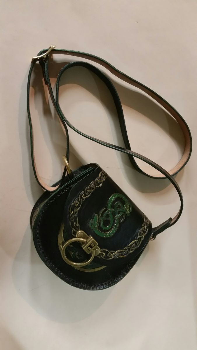 Small leather round purse, with Norse Theme