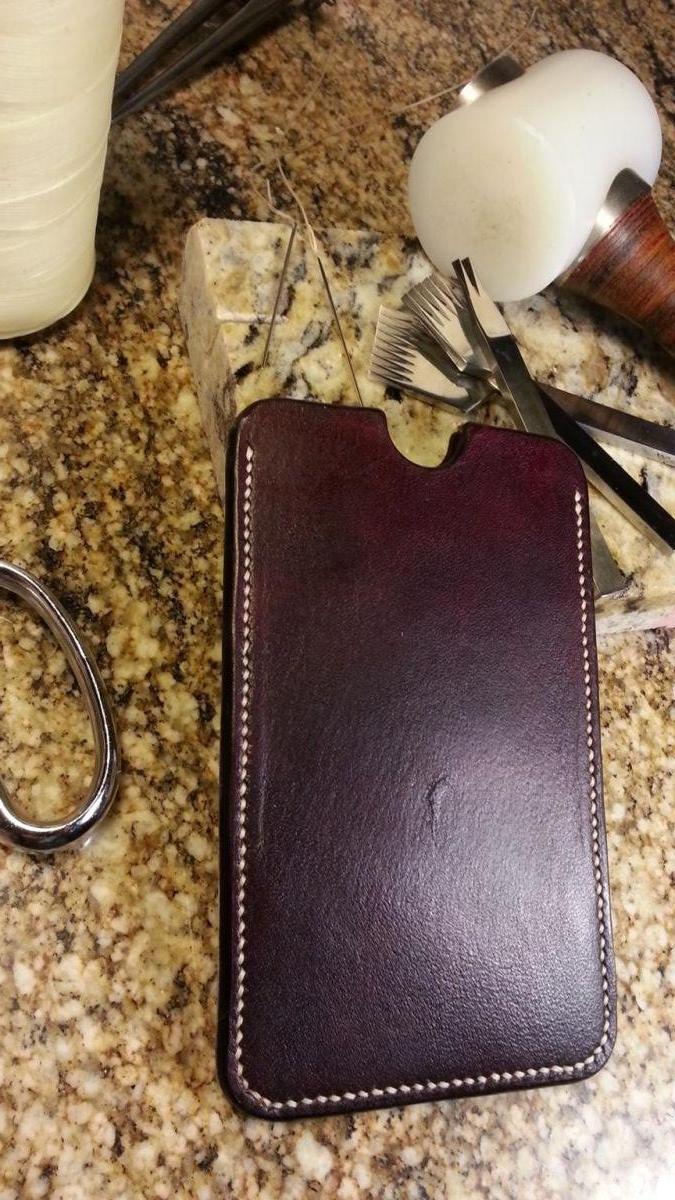 Just finished an Iphone 6 phone case. Front view. First time using European style stitching irons. I think it came out better than some of my other stitching.