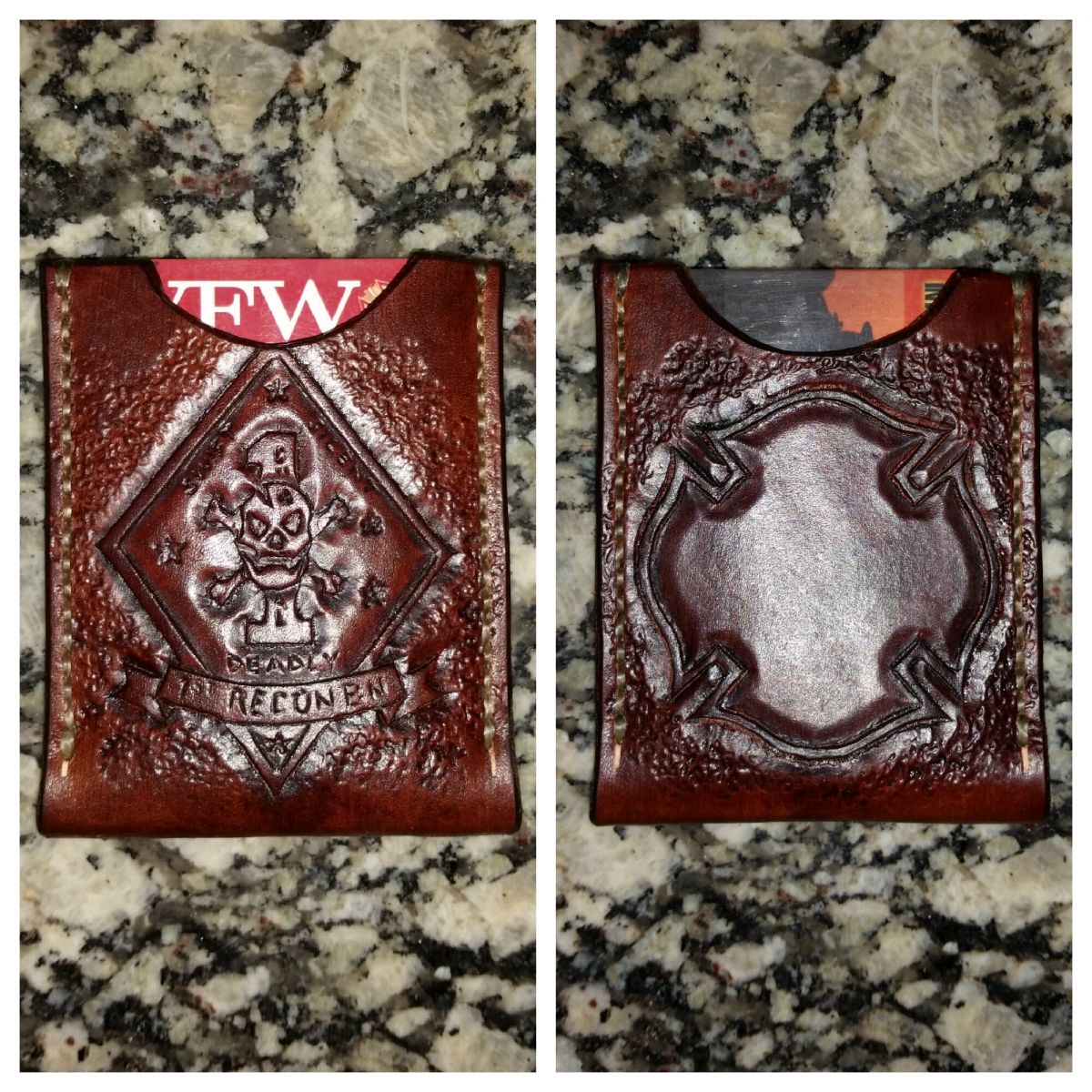 1st Recon Diamond / Firefighter Maltese Cross card wallet for a former platoon member who also left the Corps and became a Professional Firefighter. (His wife asked me to make his birthday gift)