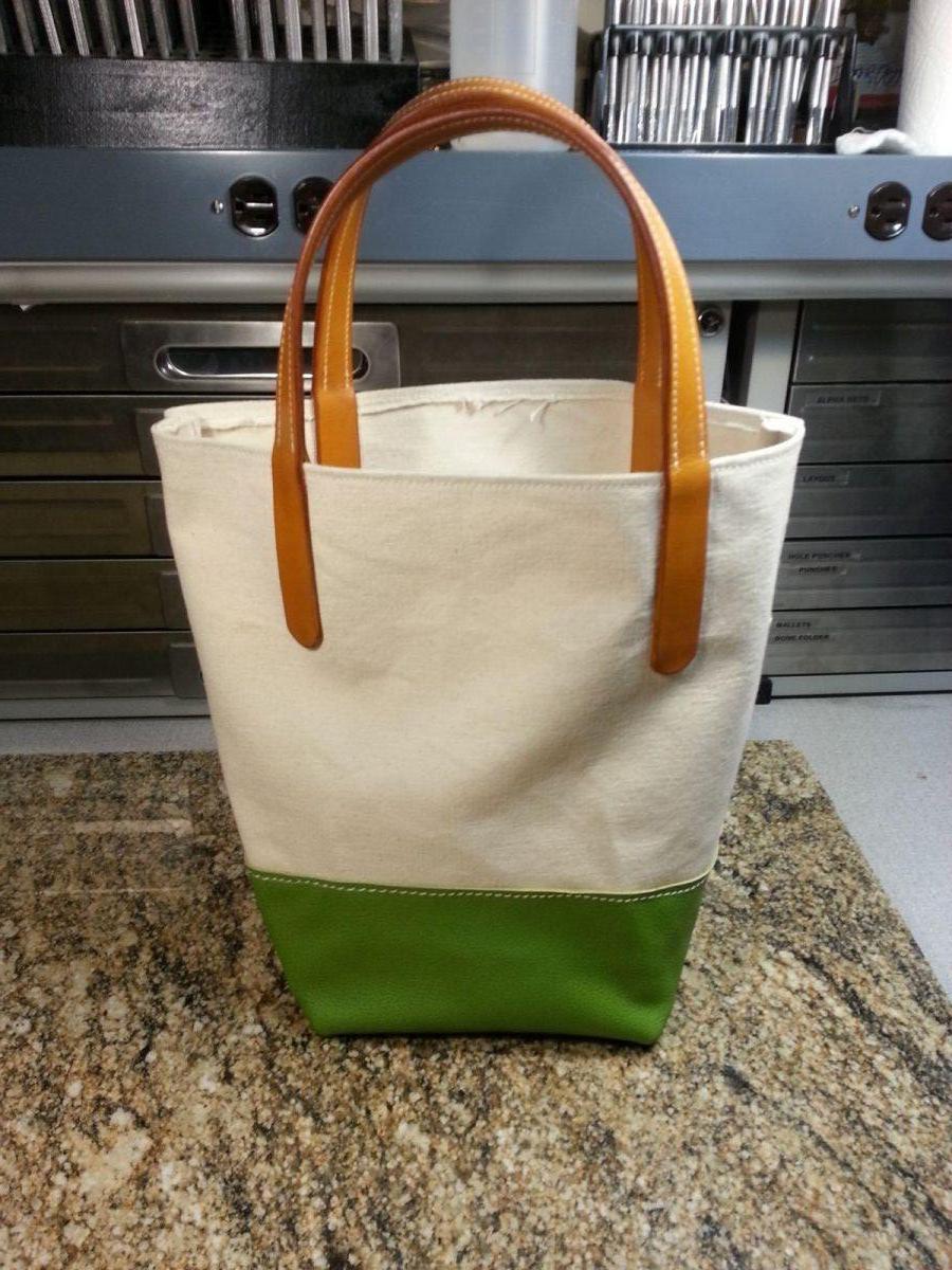 Canvas and leather tote in progress.