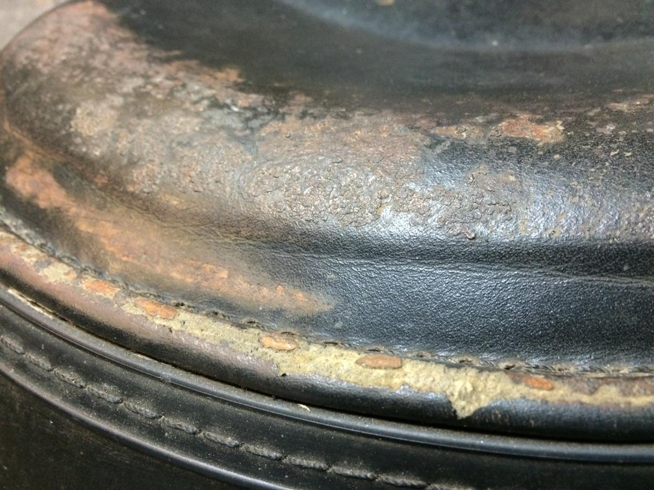 This view shows the extent of the rust and condition of the leather.