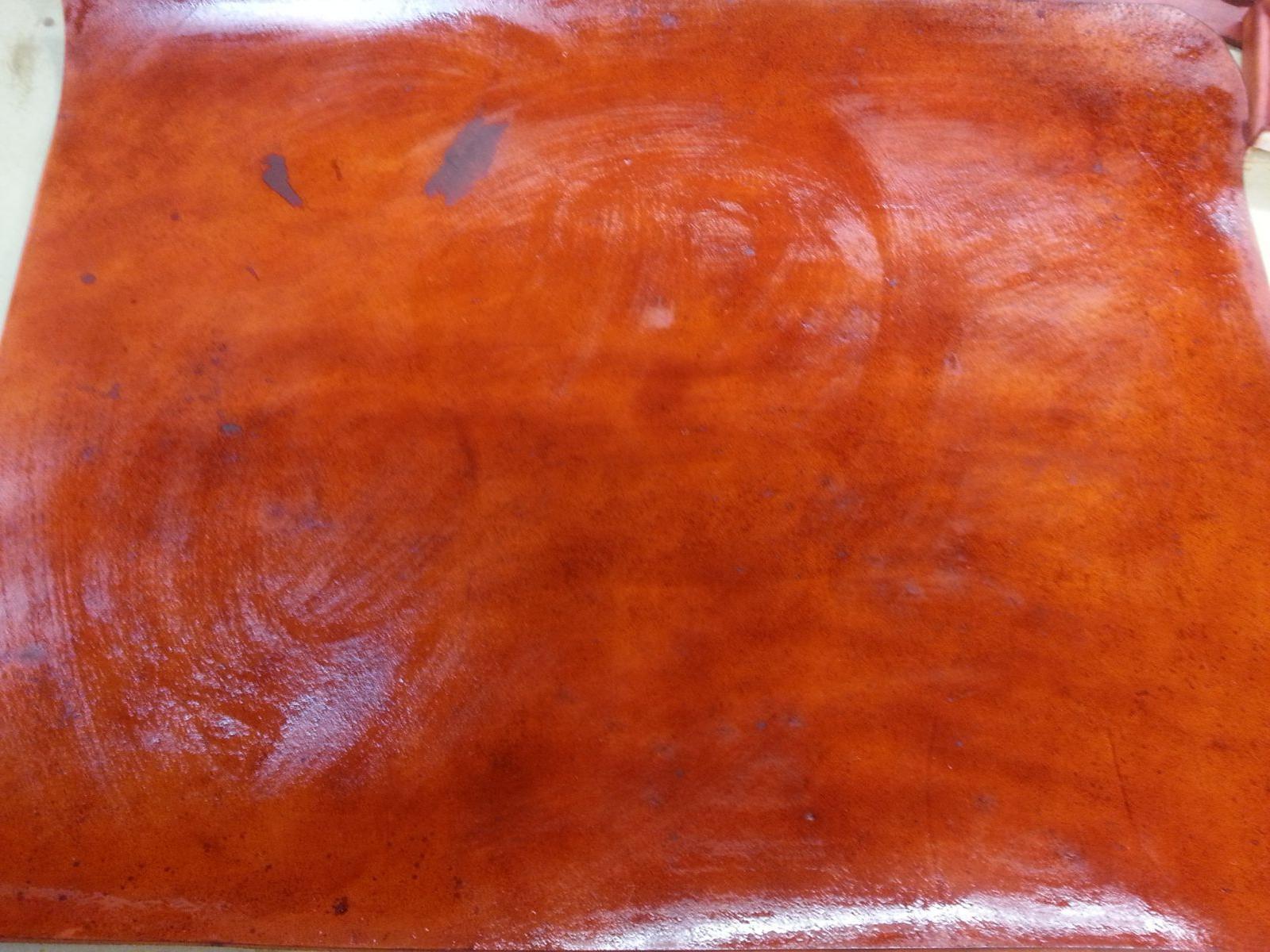 Oiled and dyed, still wet. scars and marks show pretty strongly.