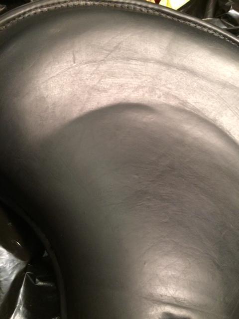 A customer's seat needing to be restored. This seat is from the late '50s to early '60s. The seat was covered in rust and had some tearing but for the most part the leather was in good condition.