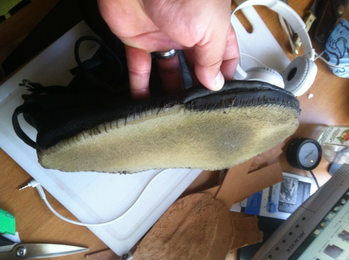 I had to sew the sole on because there were gaps when I cemented the soles onto the tabi. Lesson learned, but still haven't figured out the process to make these high quality.