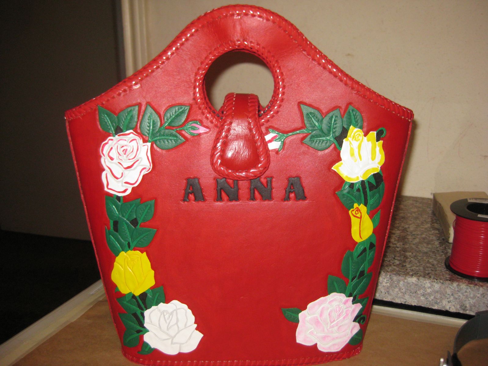 MEDIUM SIZE ROPER HANDBAG, 3/4 OZ. LEATHER, MAGNETIC CLASP.