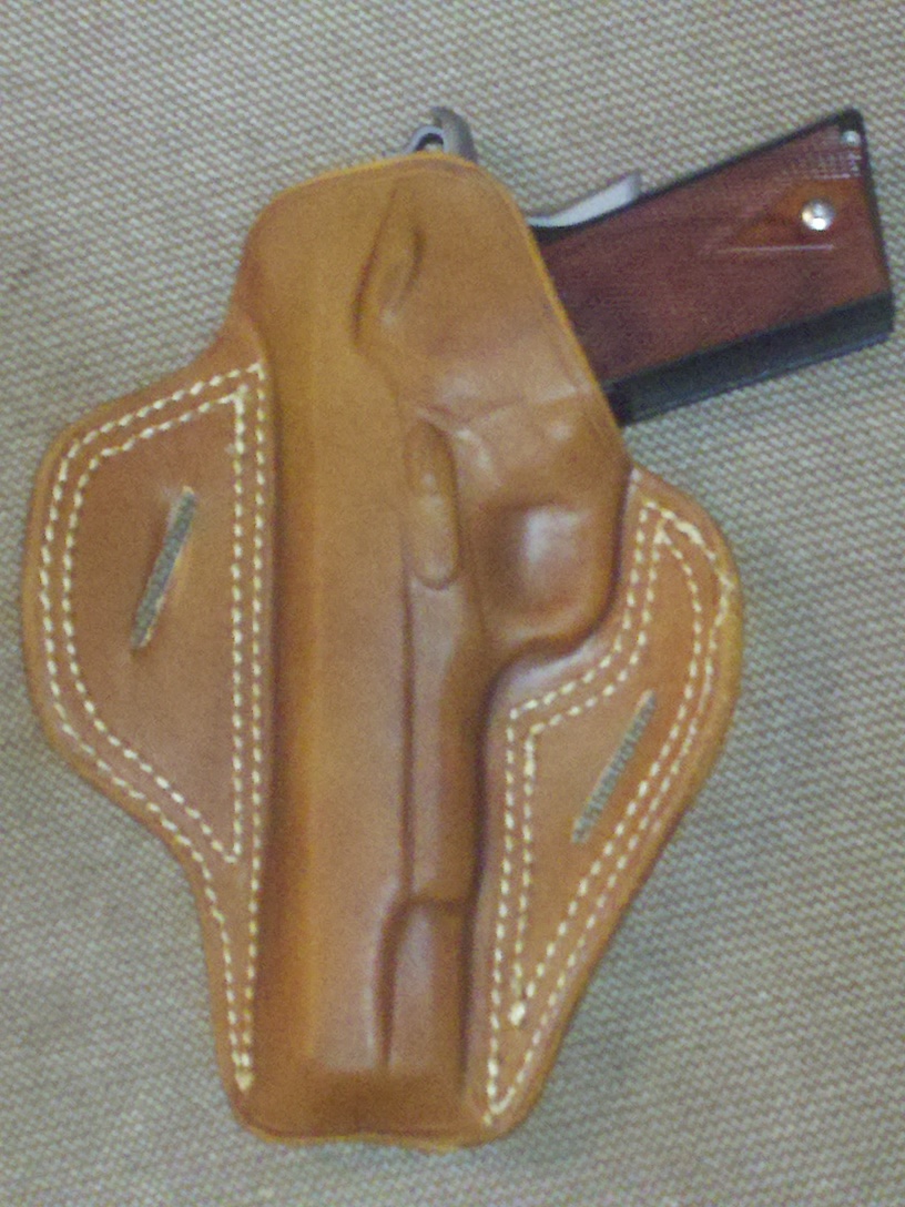 1911 govt experiment. shirt protector back. Have since modified to uncover mag release