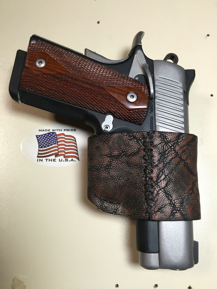 This is the smallest I've done. The elephant hide holster for a Kimber Custom Shop compact.