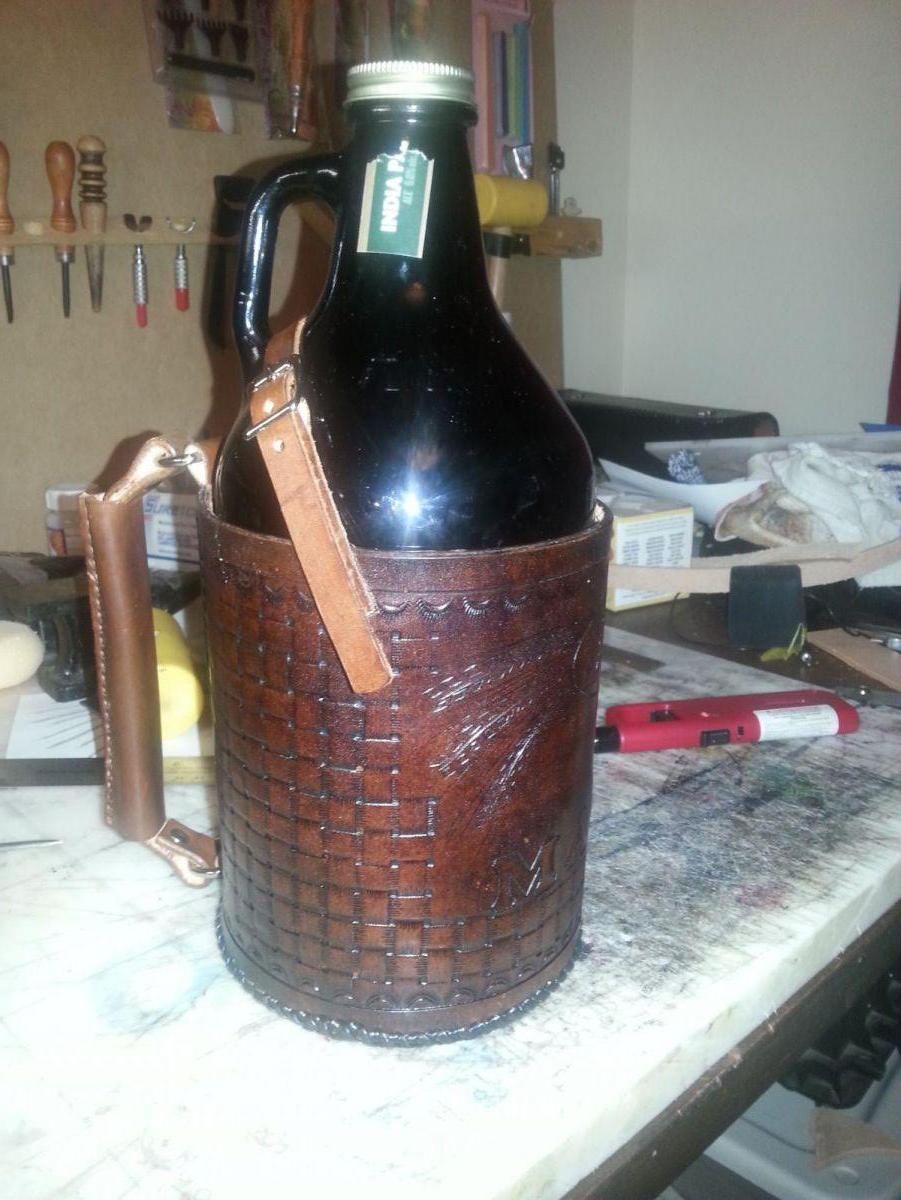 Members Halitech Posted September 28, 2015 Report Kiwi, if the basic dimensions are the same for all of the 64oz growlers then start with a piece 16.5" x 7" 9oz leather. I made the bottom from 9oz as well but could probably go with 5-6oz. The bottom I wet molded to curve into the main body but if your butt sewing is better then mine, you could go flat and probably cut 1/2" from the over all height. I went with a buckle on the strap instead of a snap in case the height is different Quote