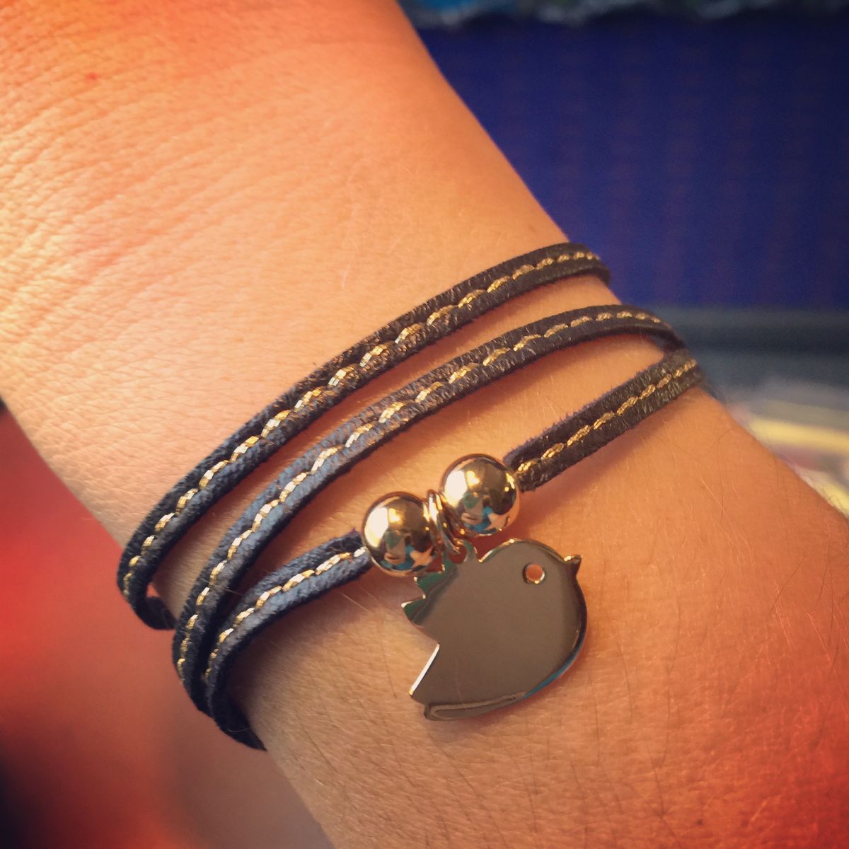 Blue bracelet with bird