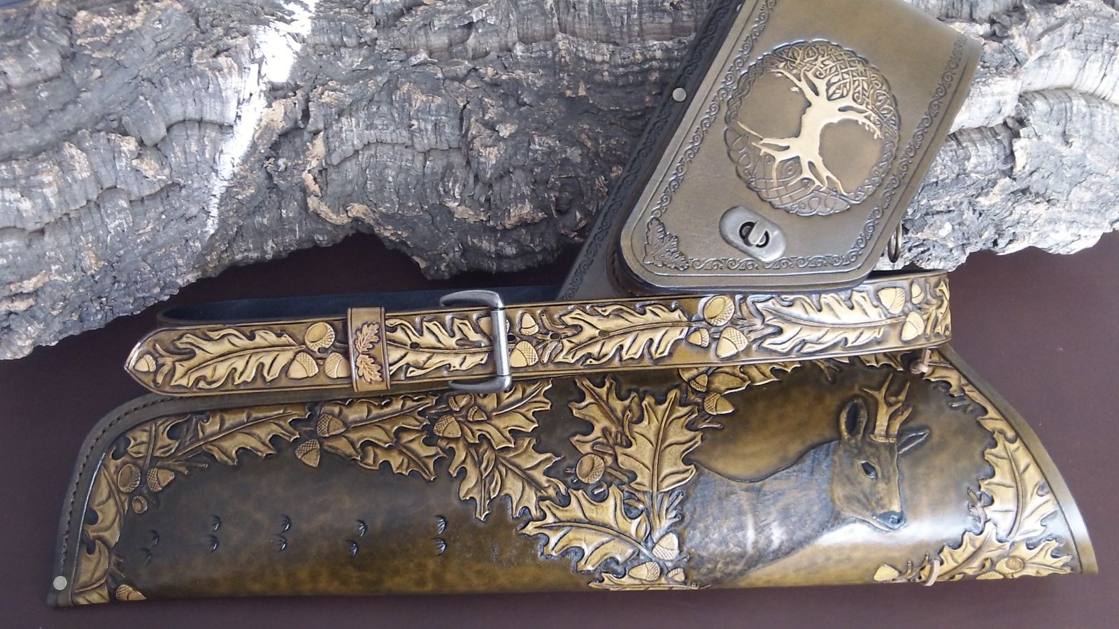 Carved leather archery quivers