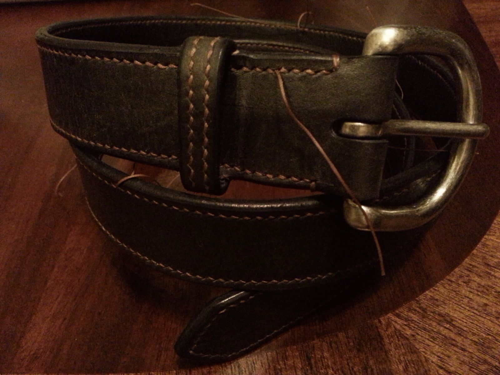 Vinegaroon black, with Havanna Cigar 0.6mm Tiger Thread. A bit rusty with my stitching, and having to use the clamshells without the rest of the stitching horse, so weird angles when I'm stitching, but happy to say it'll be a useable belt at the end of the day! Still need to trim the thread ends and tap the stitches down, then punch the holes, and ship off as a gift, in plenty of time for Christmas, heck even Thanksgiving!