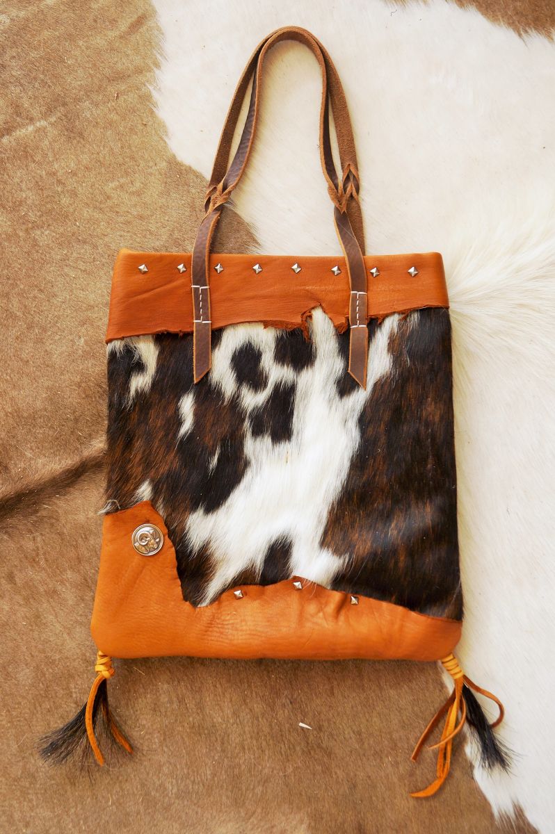 Entirely hand cut, hand sewn one of a kind bag. SOLD