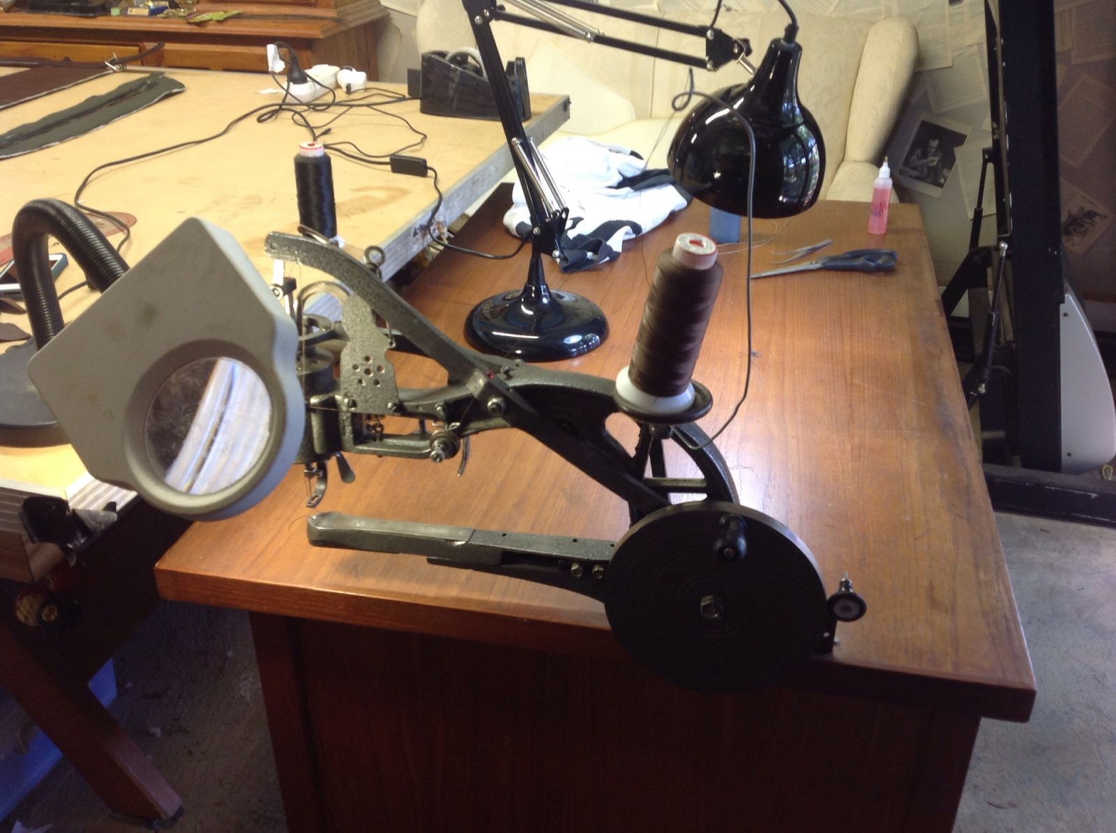 The magnifying glass was to help keep the stitching as straight as possible whilst juggling the panels through the machine.