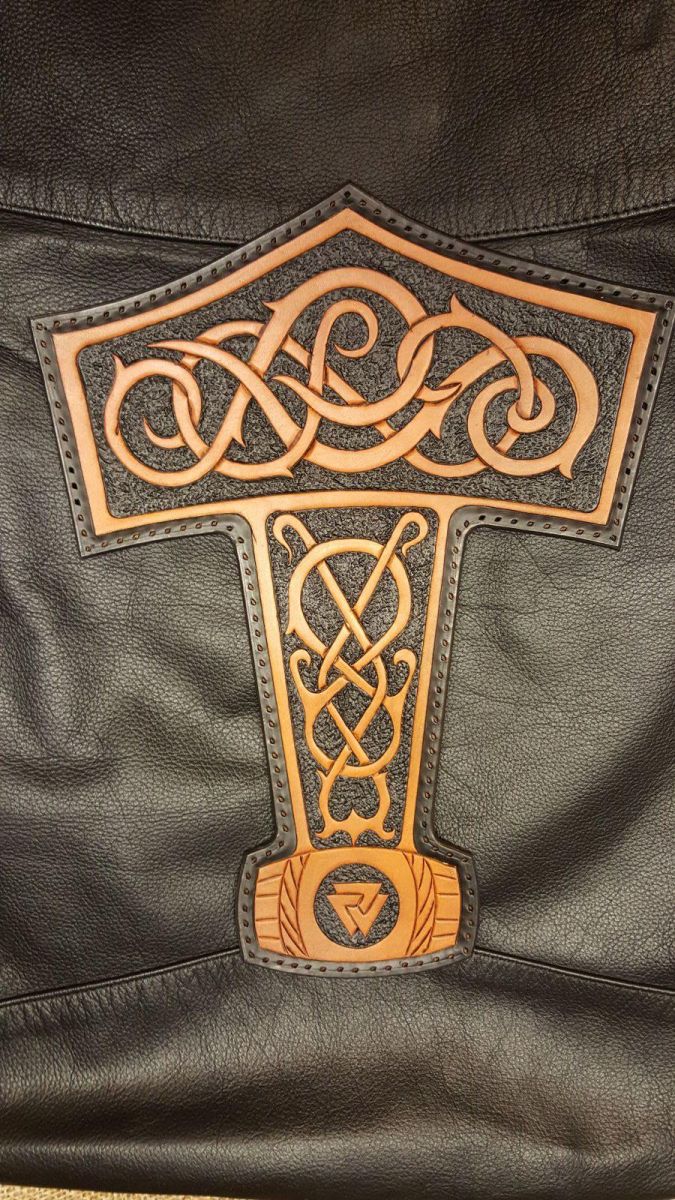 Thors hammer back patch one off design with Valknut.