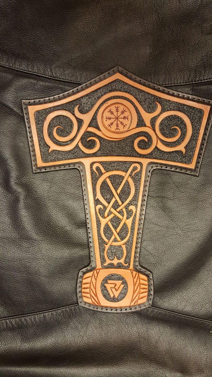 Thors hammer back patch custom design with Valknut and Helm of Awe