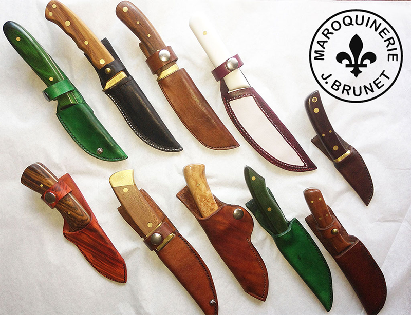 My first try at sheaths so I experimented with different styles with pieces of leather from my scrap collection. Luckily the knife maker sent me a variety of blade shapes too!