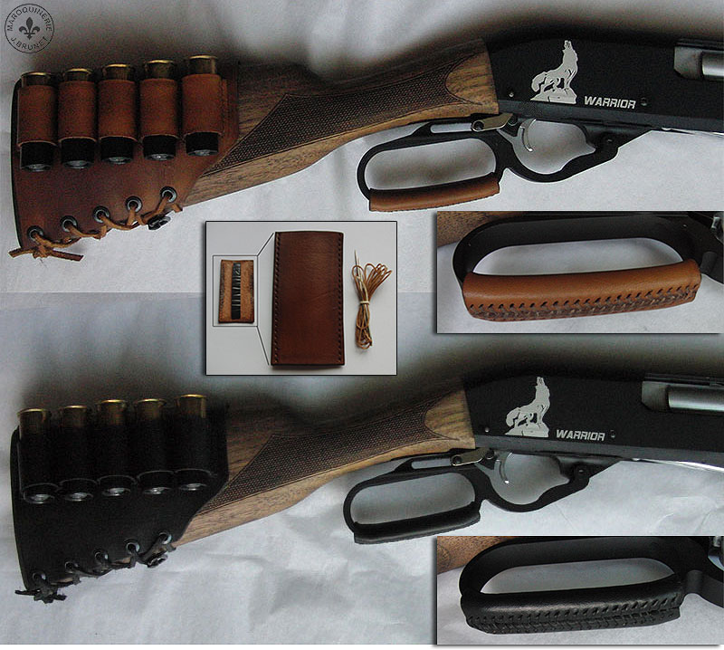 A limited edition set of leather shell holder and lever wrap I am offering for a popular line of lever action shotguns. Obtained the blessing of the importer to advertise to his clients. Quite a hit!