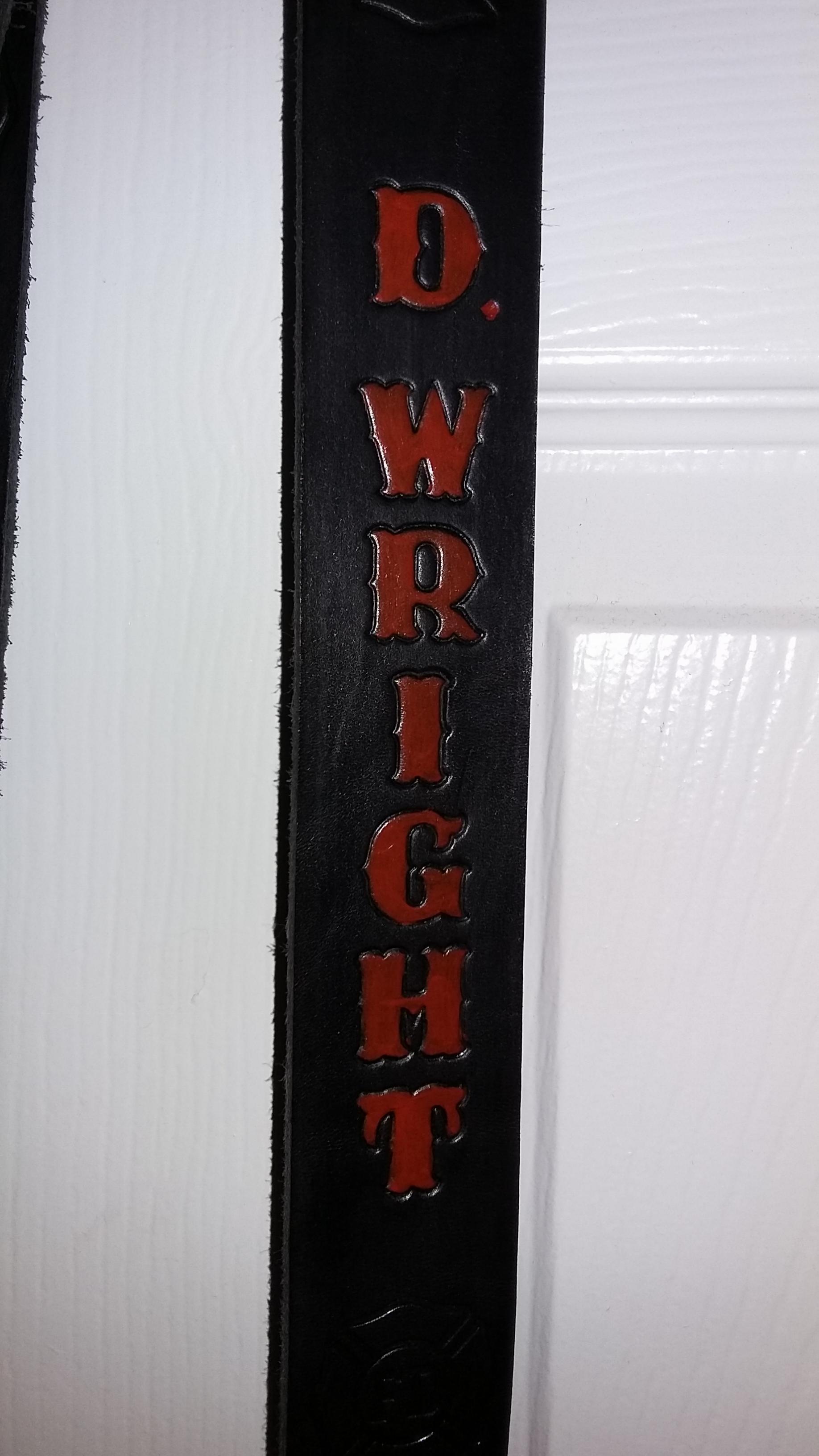 radio cases for a local department. Cases are made from 6-7oz veg tanned leather, straps are made from 9oz veg tanned leather. Everything was done with vinegaroon and then treated with beeswax and resolene. Copper rivets at the higher stress points. Front is hand stitched and riveted. Names are hand painted with cova colour paint.