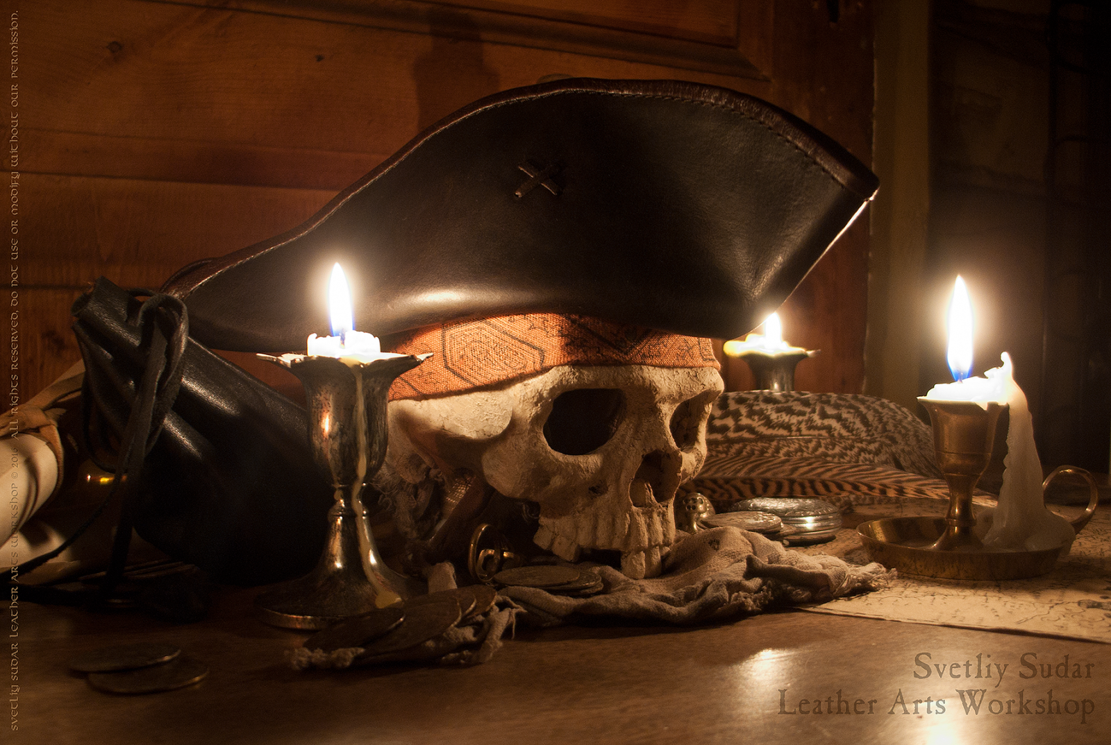 Tricorne: leather, waxing and tinting. The one-piece dome 40cm in girth.