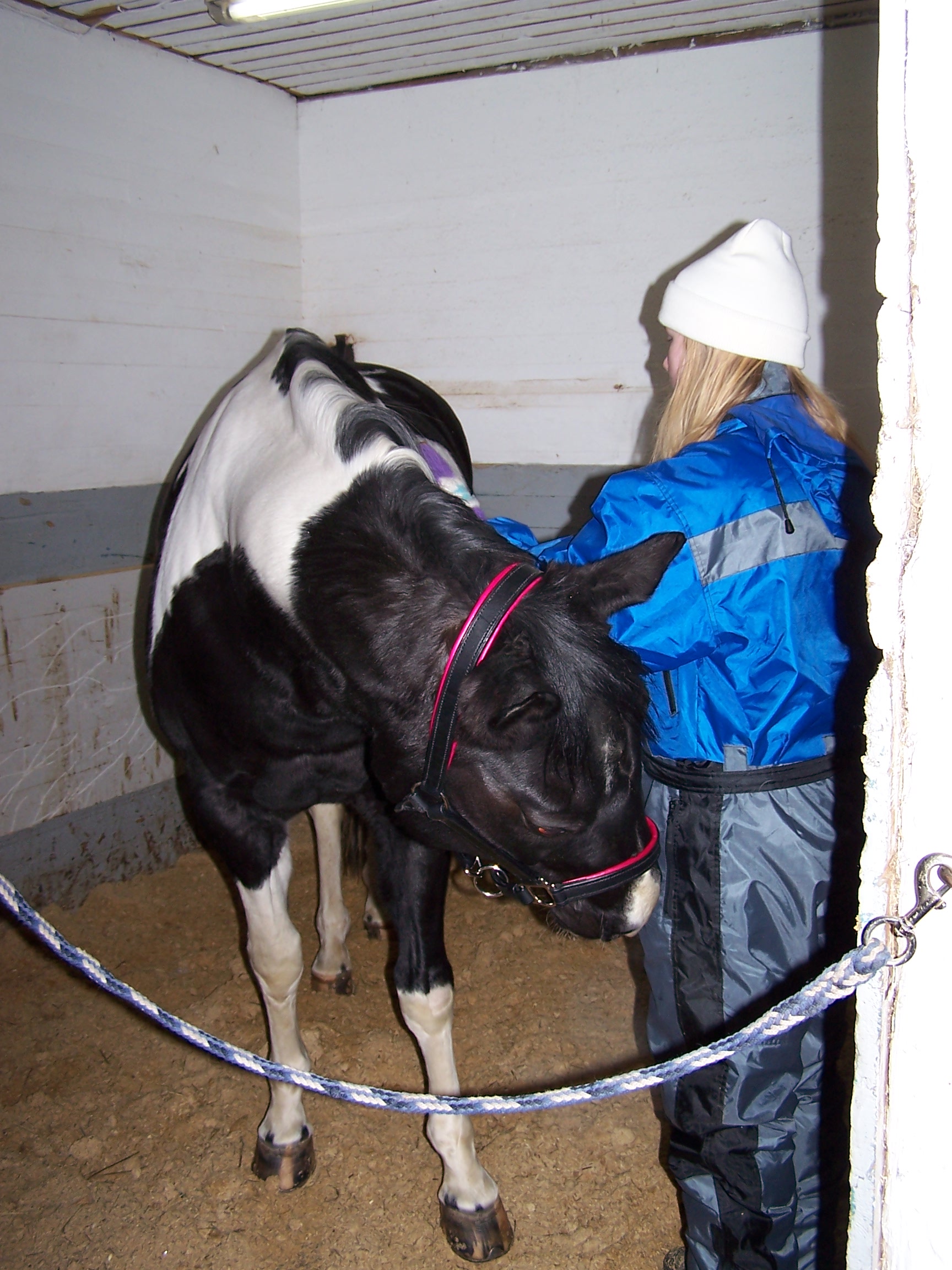 Halter, norwegian bridle leather, dyed pink goat leather, padded with wool.