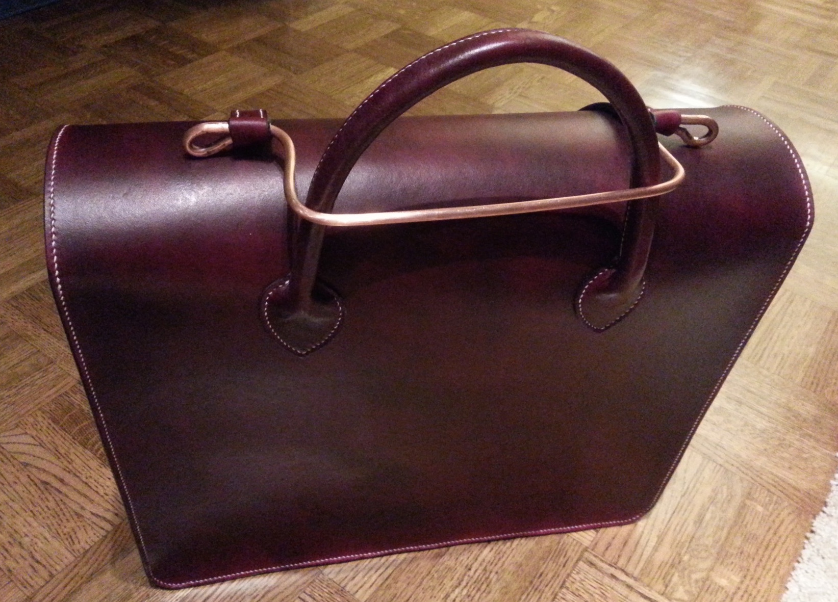 Finally finished my version of a music case. This one is significantly larger than what I have seen, designed to fit a 15" MacBook Pro, and other necessities. Hand stitched using Coats Barbour, fully lined, hand dyed veg tan body.