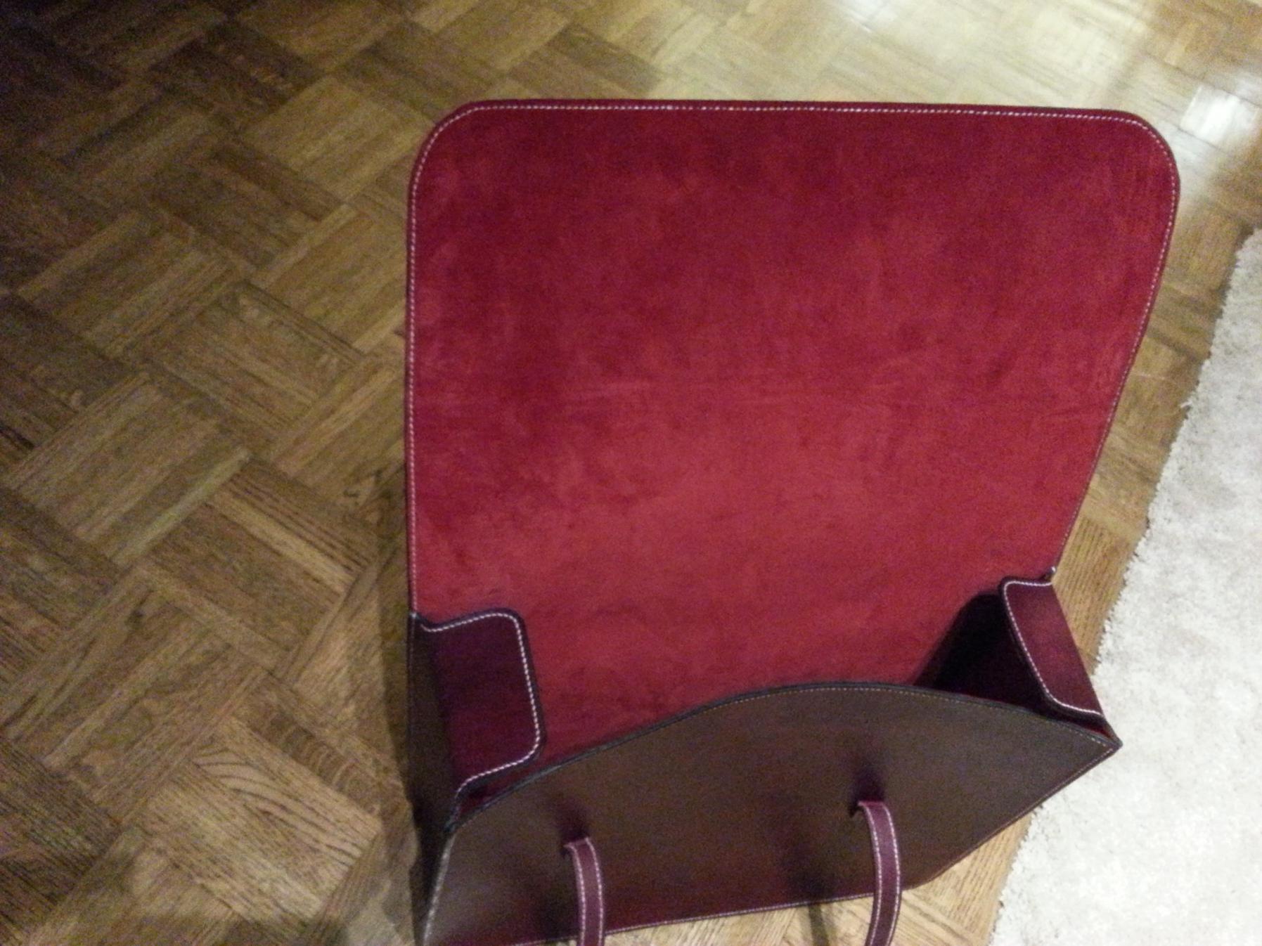 Finally finished my version of a music case. This one is significantly larger than what I have seen, designed to fit a 15" MacBook Pro, and other necessities. Hand stitched using Coats Barbour, fully lined, hand dyed veg tan body.
