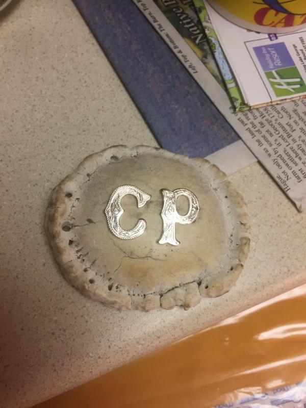 Elk button with the owners initials