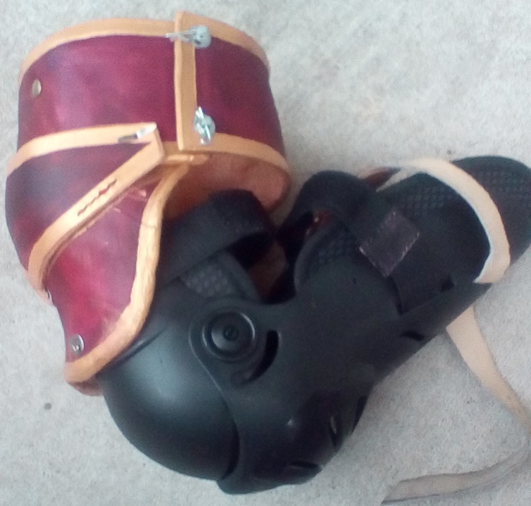 I augmented the arm guards I use for longsword fencing -- now I have a functional rerebrace that covers the upper arm.