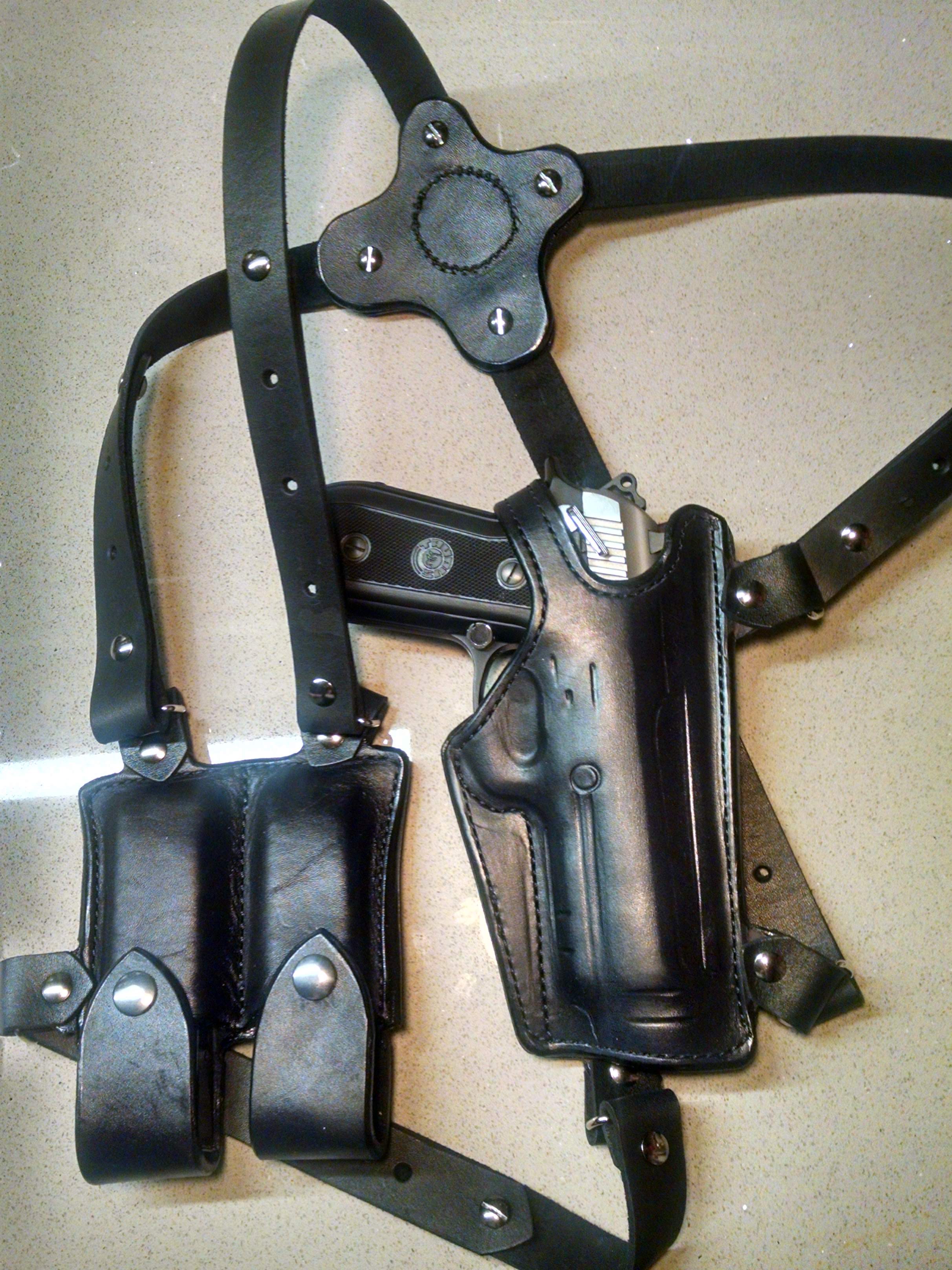 Members Brooks125 Posted September 10, 2019 Report This should work better. This is from my last gun show after I picked up an assistant, whom I named "Mary Queen of Scots" (due to the physical resemblance). This holster fits a 1911. Mary here is pretty thin so the holster fits awfully loose, but it's great for display. Quote