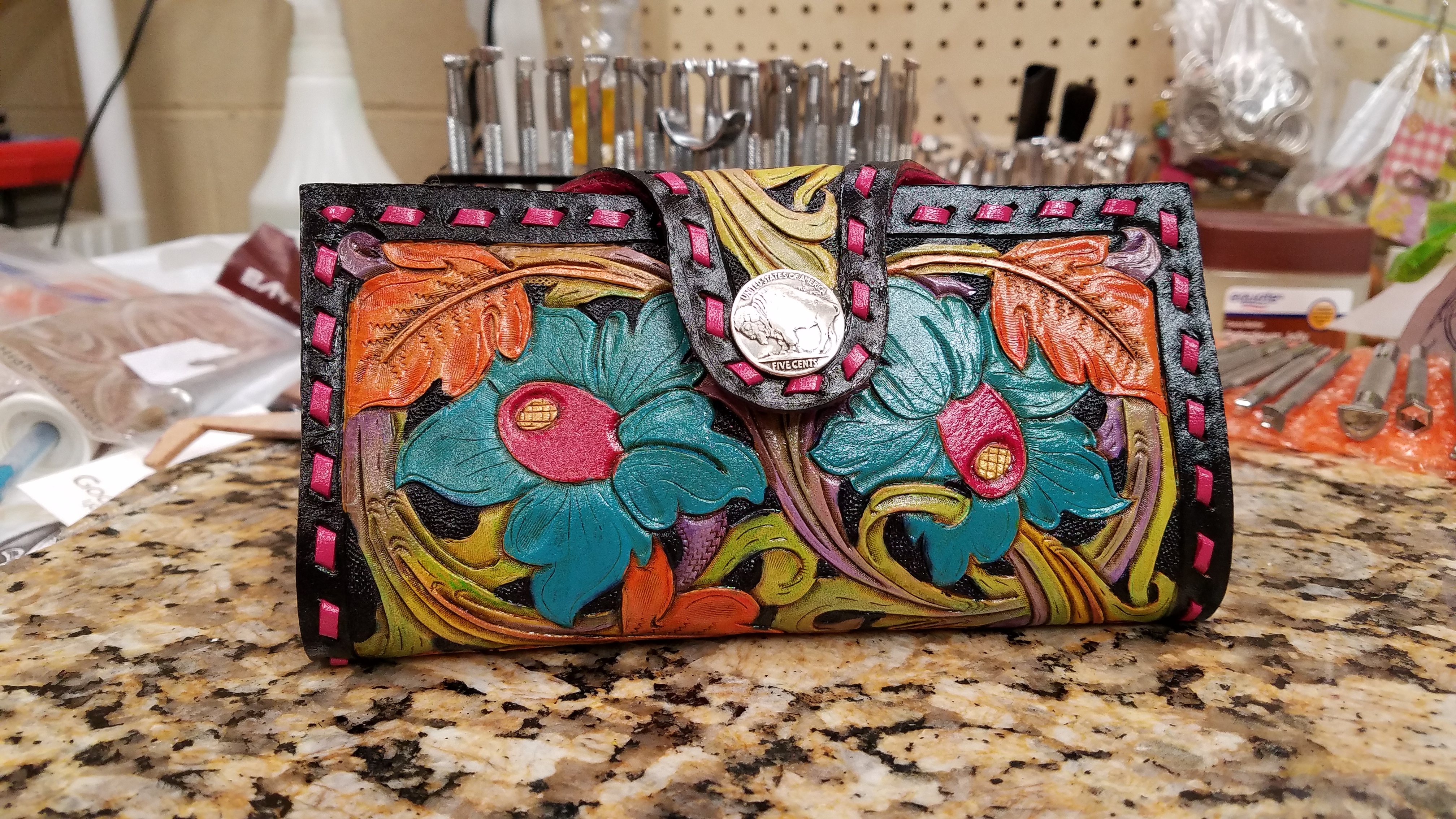 Tolled leather ladies clutch