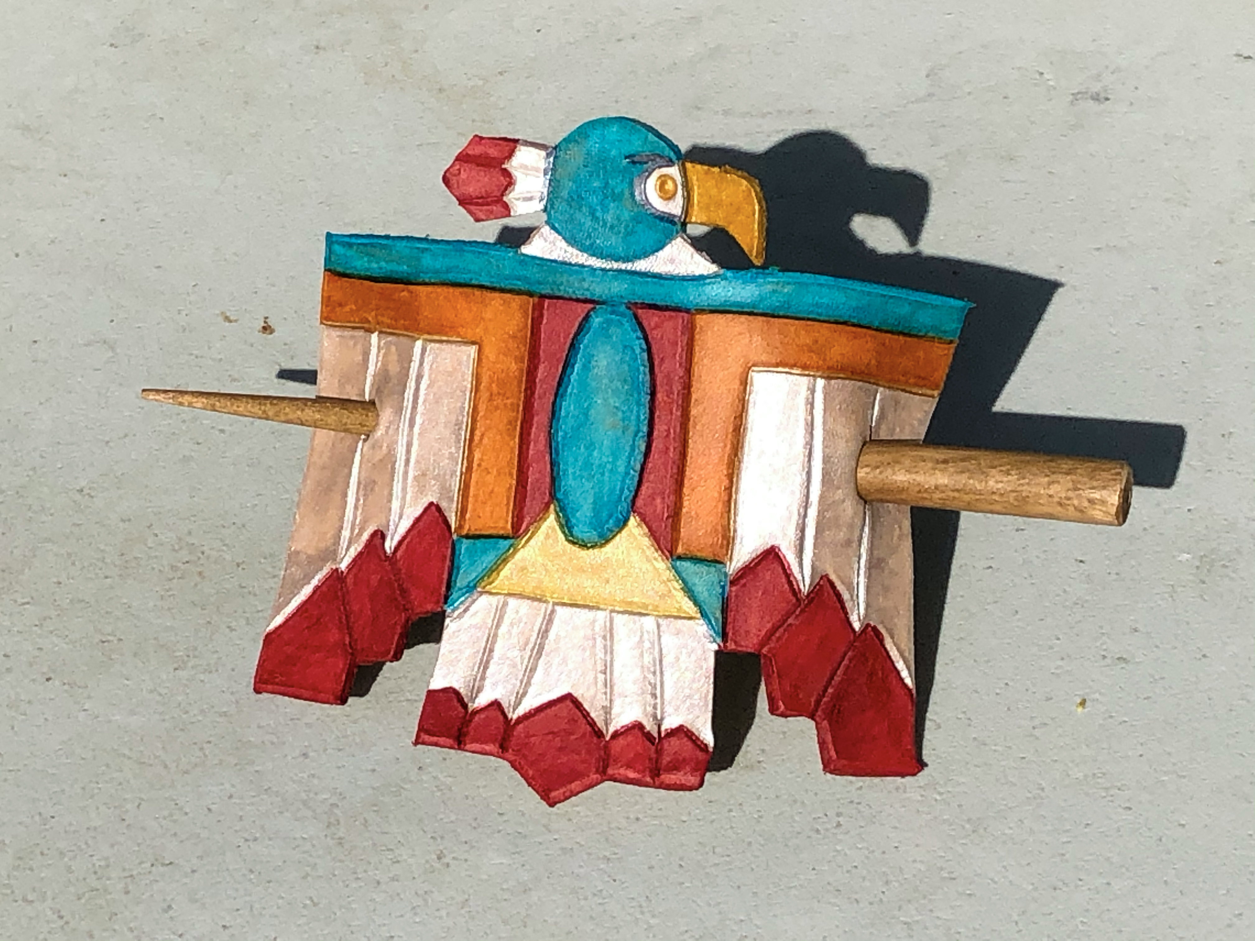 Hair barrette made of 5-6 oz veg-tan leather. The hair stick was sourced from a maker on ETSY.