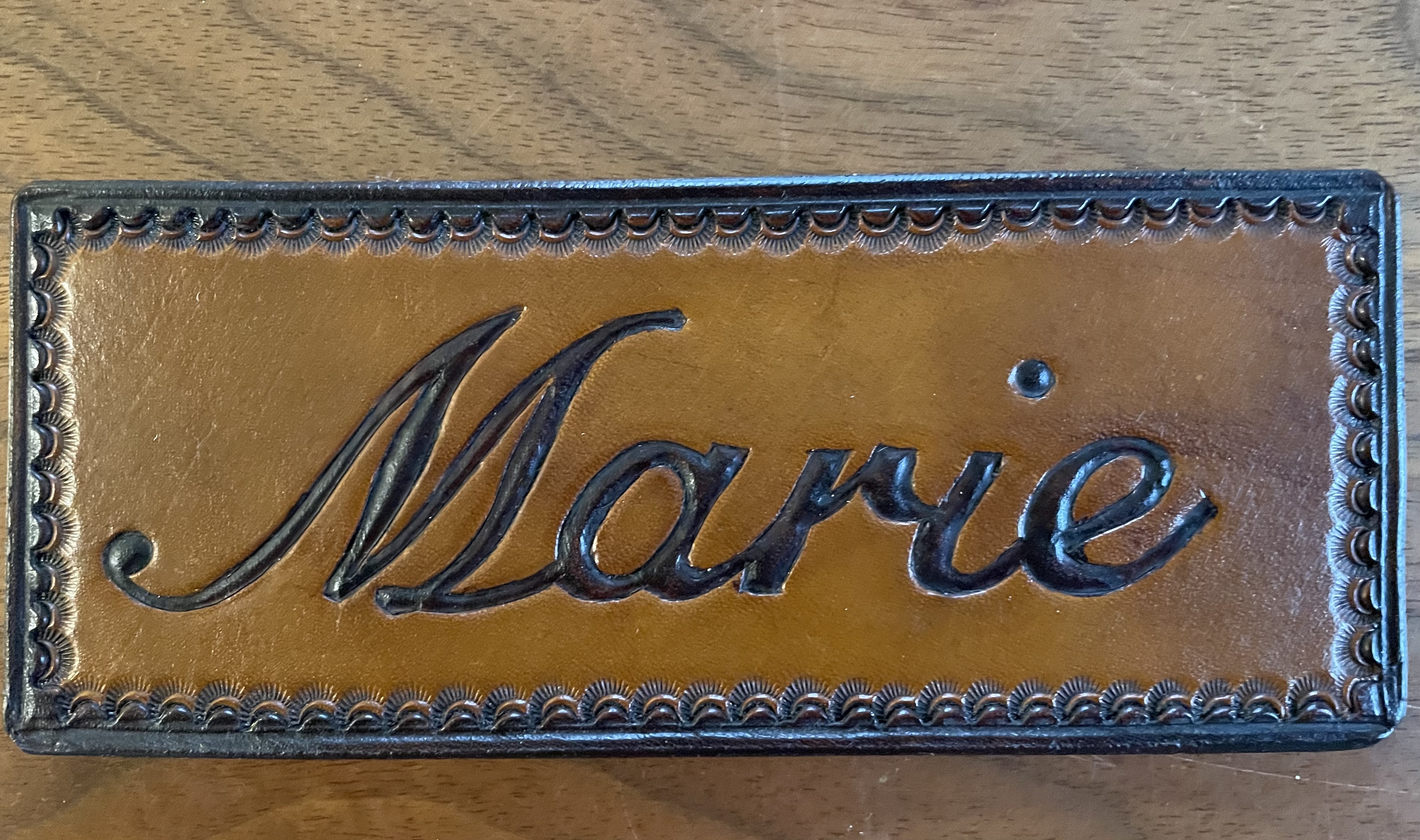 Practice piece for “script” on a guitar strap I will soon be making - inverted carving