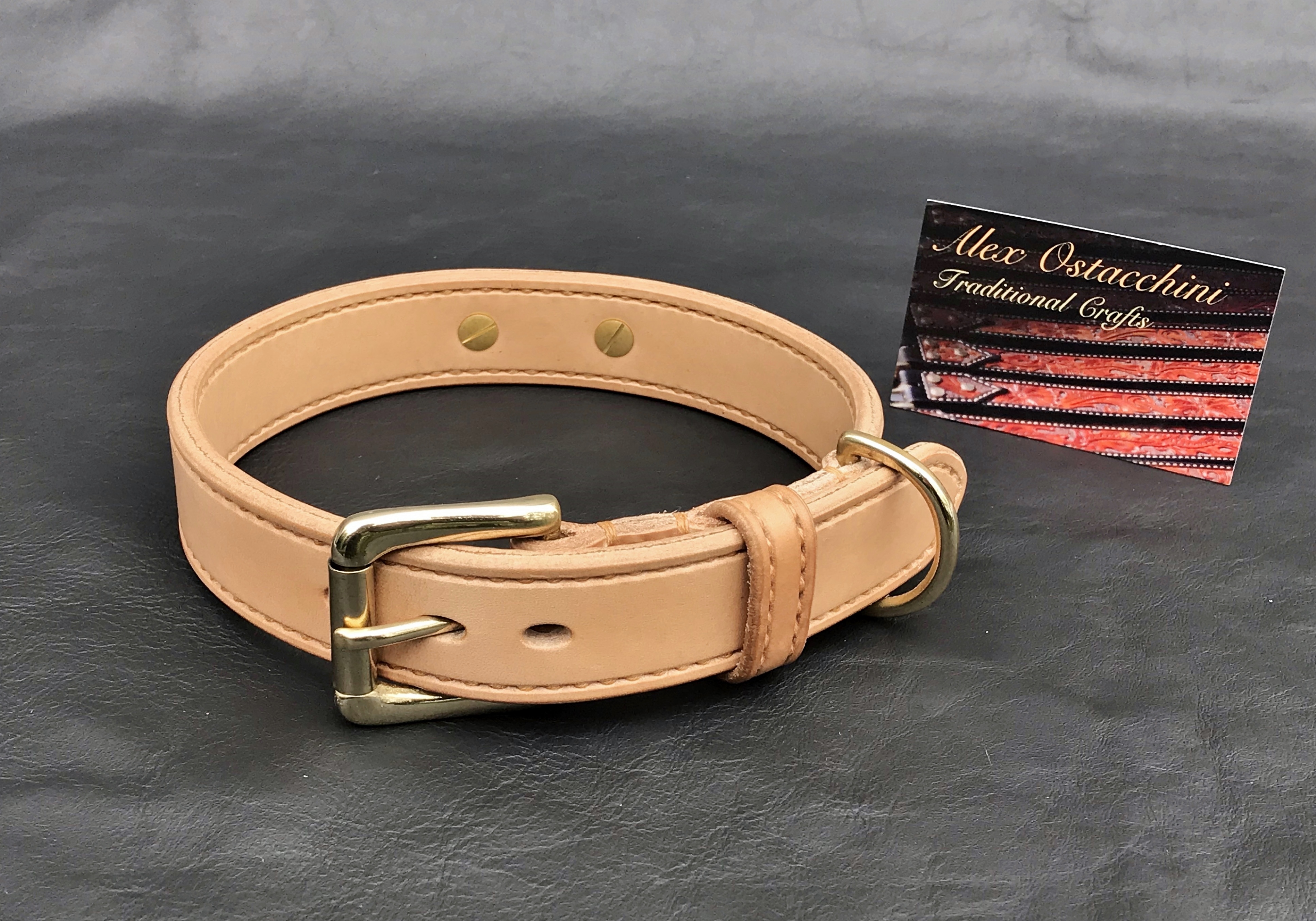 Double layered dog collar in natural veg tan